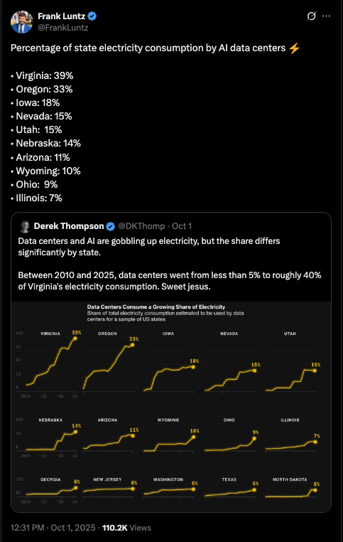 With nearly 40% of Virginia’s power now being routed to data centers, this very quickly is going to become a political issue.
